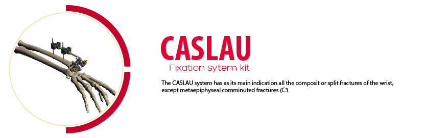 El sistema CASLAU estéril tiene como principal indicación todas las fracturas compuestas o divididas de la muñeca, excepto las fracturas meta-epifisarias trituradas (C3).