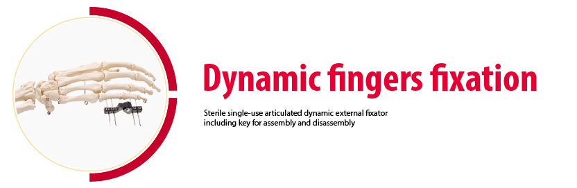 Estéril fijador externo dinámico articulado de un solo uso, incluyendo llave para montaje y desmontaje.