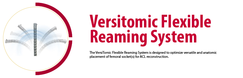 Disponible en tamaños de 4,5 - 12 mm en incrementos de 0,5 mm. Los taladros VersiTomic Flex, cada uno de ellos con una cabeza de flauta de corte excéntrica con eje de pieza de rompecabezas flexible, están diseñados para permitir una colocación intra-articular segura, creación de túneles / cavidades sin dañar las estructuras de cartílago periférico, hueso o partes blandas.